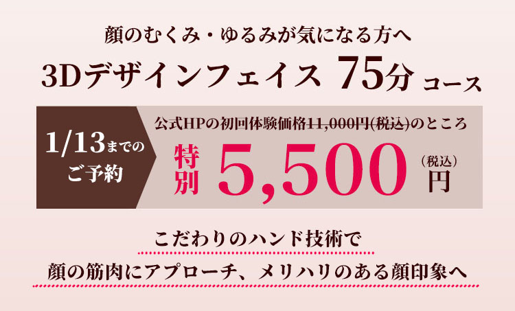 エステティシャンの細やかな指使いで表情筋をほぐして、すっきりと引き締まった印象のラインを目指します。